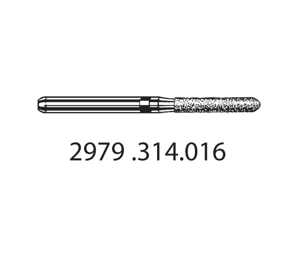 2979.314.016 DIAMOND CCA. SERIES 2000 ISO: 103 - Maximum Speed: 300,000 rpm - Shape: EGG Diameter 016 - Turbine Shank EXTRA COARSE Grit Type: EXTRA COARSE - Application: Preparation Carving - Packaging Quantity: 5 pcs