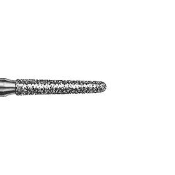 Conical bur with a rounded bevel edge and angled coarse-grain diamond for crown preparation, adapted to the finishing instrument H375R of carbide ISO: 103 - Maximum Speed: 450,000 rpm - Shape: ROUND-END CONICAL Diameter 014 - Shank: SHORT TURBINE COARSE Grain Type: COARSE - Application: Preparation Carving - Packaging Quantity: 5 pcs.