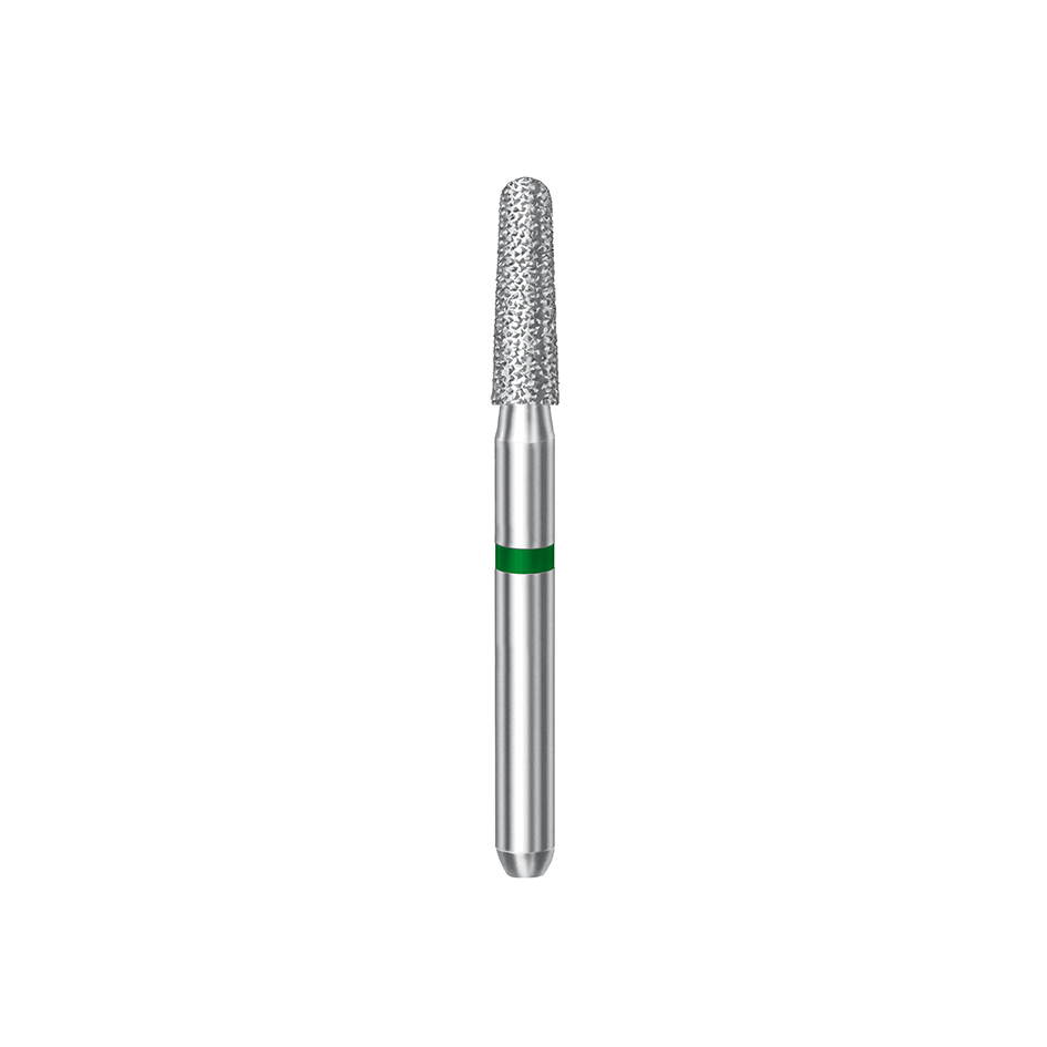 Conical bur with a rounded bevel edge and angled coarse diamond grain for crown preparation, adapted to the finishing instrument H375R made of carbide. ISO: 103 - Maximum Speed: 450,000 rpm - Shape: ROUND-END CONICAL Diameter 016 - Shank: SHORT TURBINE COARSE Grain Type: COARSE - Application: Preparation Carving - Packaging Quantity: 5 pcs