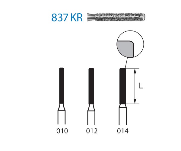 837KR.314.010 KOMET DIAMOND BUR CYLINDRICAL ROUNDED EDGE TURBINE ø 010 STANDARD GRIT 5 pcs