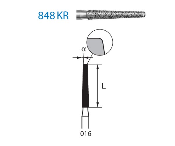 848KR.314.016 KOMET DIAMOND CONICAL BUR ROUNDED EDGE TURBINE ø 016 STANDARD GRAIN 5 pcs.