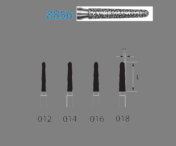 Preparation instruments ISO: 806 314 198514 018 - Maximum Speed: 450,000 rpm - Shape: CONICAL ROUND - Diameter: 018 - Shank: TURBINE - FINE GRIT Application: Polishing Preparation Carving - Packaging Quantity: 5