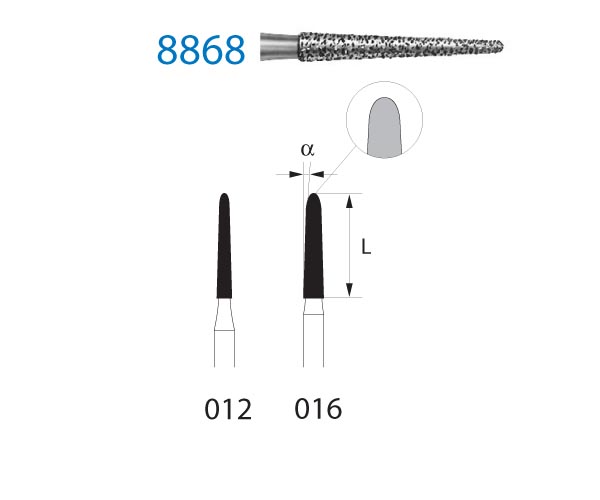 Preparation instruments ISO: 103 - Maximum Speed: 450,000 rpm - Shape: CONICAL ROUND Diameter 016 - Turbine Chuck FINE Grain Type: FINE - Application: Polishing Preparation Carving - Packaging Quantity: 5 pcs