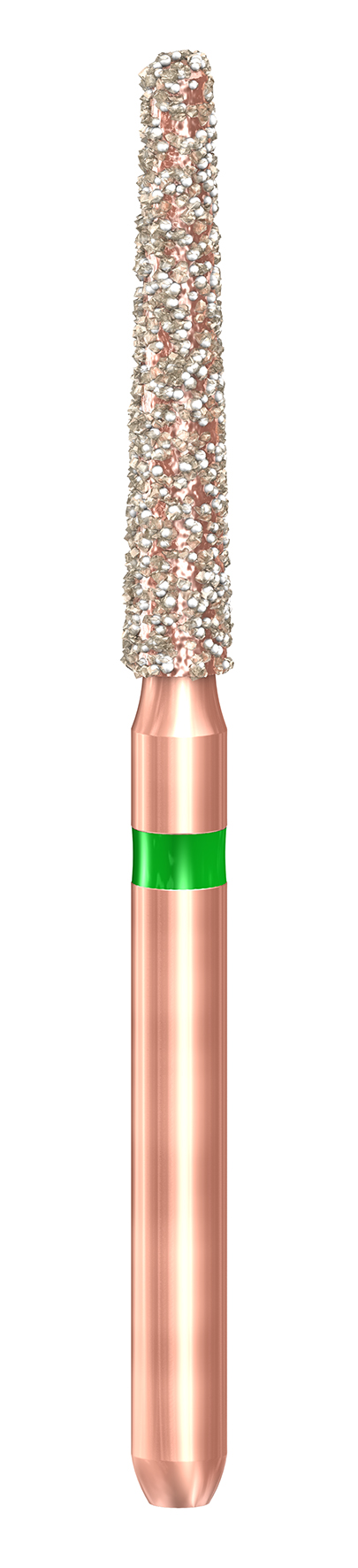 Concentrated strength, longer lifespan, better control. DIAO instruments are distinguished by their handling, vibration-free operation, and smooth work on the tooth. Optimal speed 160,000 rpm. Diamond conical rounded edge ISO: 103 - Maximum Revolution: 300,000 rpm - Shape: CONICAL ROUNDED SHOULDER Diameter 014 - Turbine Shank - Grain Type: - Application: Crown Preparation - Packaging Quantity: 5 pcs