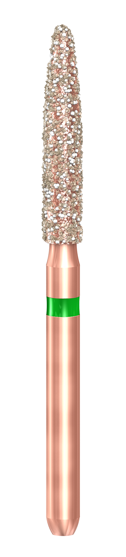 Concentrated strength, longer lifespan, better control. DIAO instruments stand out for their handling, vibration-free operation, and smooth work on the tooth. Optimal speed 160,000 rpm. Diamond Flame ISO: 103 - Maximum Revolution: 300,000 rpm - Shape: FLAME Diameter 014 - Turbine Shank - Grit Type: - Application: Crown Preparation - Packaging Quantity: 5 pcs