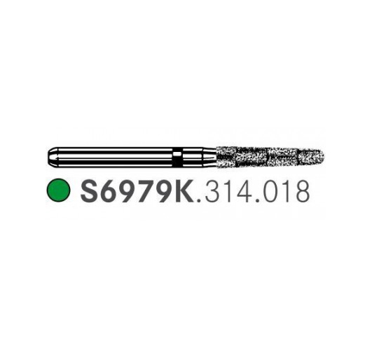 Series S for crown preparation. Diamond bur with a shank featuring overlapping flat faces. Allows for better debris evacuation, prevents the bur from dulling, enables faster and more effective work, increases the durability of the bur, achieves better cooling, and reduces vibrations that are uncomfortable for both the patient and the professional. ISO: 103 - Maximum Speed: 300,000 rpm - Shape: TORPEDO CONICAL Diameter 018 - Shank TURBINE COARSE S Grain Type: COARSE S - Application: Preparation Carving - Packaging Quantity: 5 pcs.