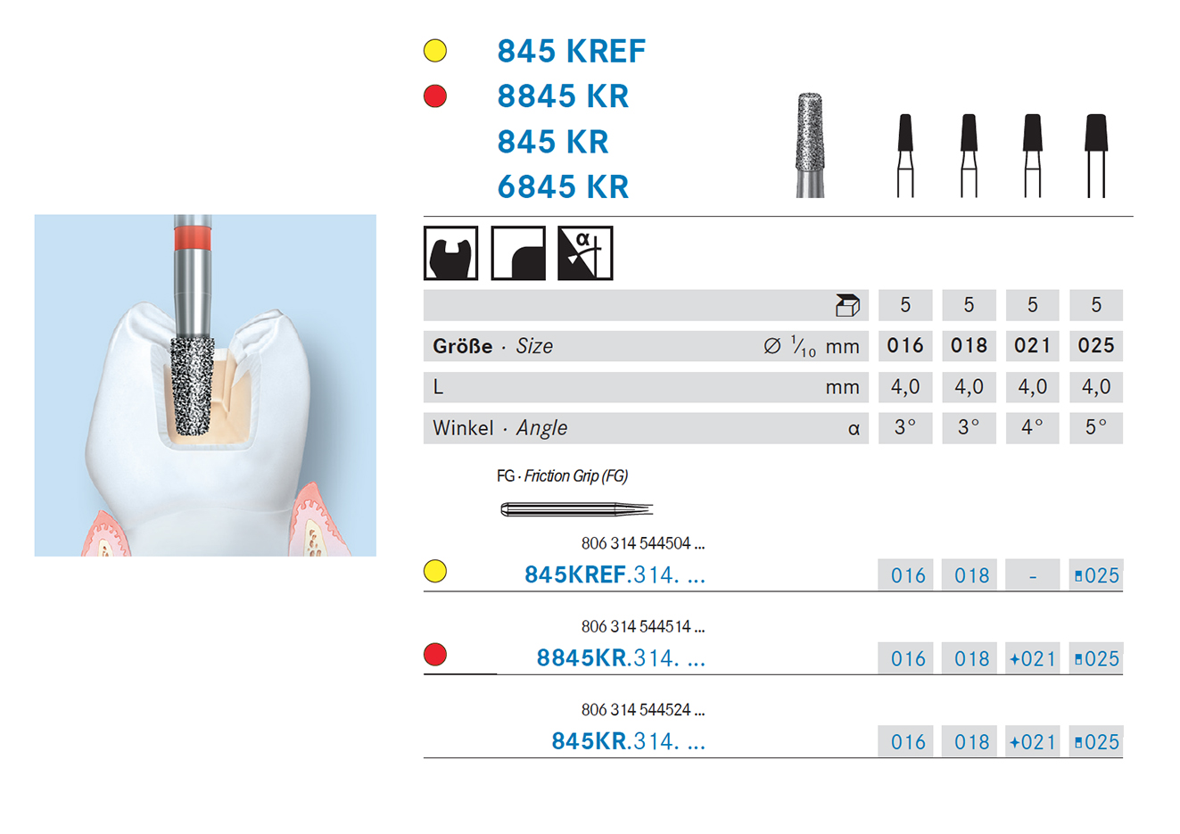 10839.314.016 KOMET DIAMOND BUR CYLINDRICAL TURBINE ø 016 STANDARD GRAIN 5 pcs