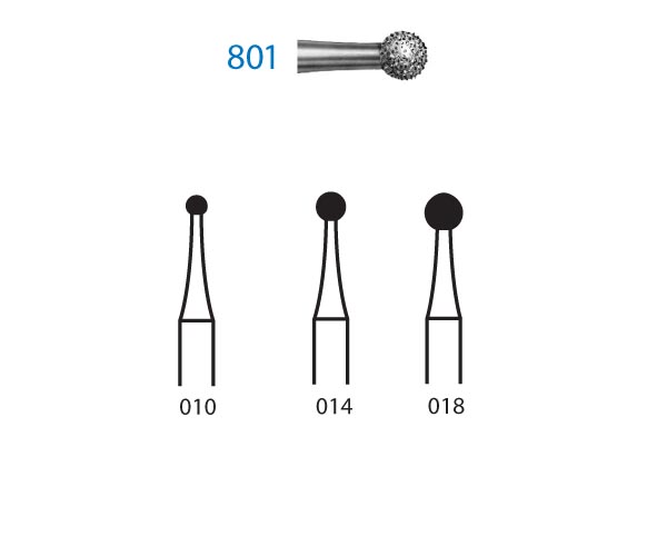 Preparation instruments ISO: 325 204 001071 012 - Maximum Speed: 450,000 rpm - Shape: BALL - Diameter: 010 - Shank: SHORT TURBINE - STANDARD GRIT Application: Cavity Preparation - Packaging Quantity: 5