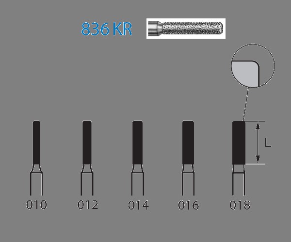 836KR.314.012 KOMET DIAMOND BUR CYLINDRICAL ROUNDED EDGE TURBINE ø 012 STANDARD GRIT 5 pcs.