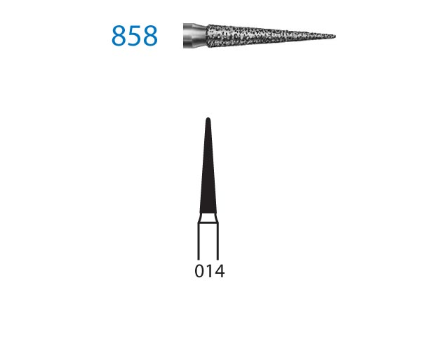 Preparation instruments ISO: 328 205 001001 014 - Maximum Speed: 300,000 rpm - Shape: LANCE - Diameter: 014 - Shank: SHORT TURBINE - STANDARD GRIT Application: Interproximal Preparation - Packaging Quantity: 5