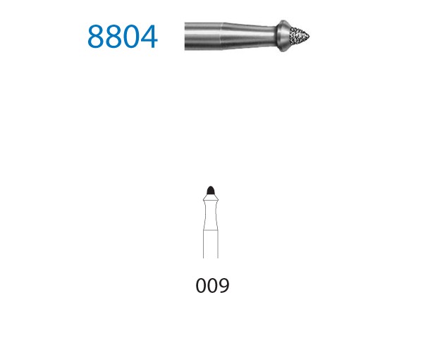 Preparation instruments ISO: 806 314 473514 009 - Maximum Speed: 450,000 rpm - Shape: SPECIAL SHAPES - Diameter: 009 - Shank: TURBINE - FINE GRIT Application: Occlusal Preparation - Packaging Quantity: 5