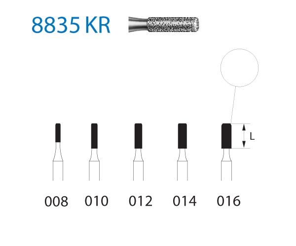 8835KR.314.010 KOMET DIAMOND CYLINDRICAL BUR ROUNDED EDGE TURBINE ø 010 FINE GRIT 5 pcs.