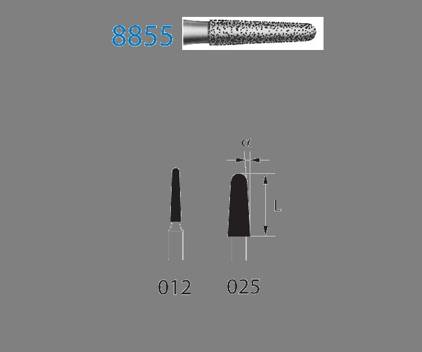Preparation instruments ISO: 806 314 197514 025 - Maximum Speed: 160,000 rpm - Shape: CONICAL ROUND - Diameter: 025 - Shank: TURBINE - FINE GRIT Application: Polishing Preparation Carving - Packaging Quantity: 5
