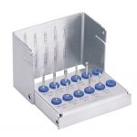 Direct Style is a kit designed for preparing cavities for anterior and posterior teeth. The burs arranged in the top row are for posterior teeth and are used in order from left to right with minimal change in the daily workflow sequence. The burs arranged in the bottom row are for anterior teeth.