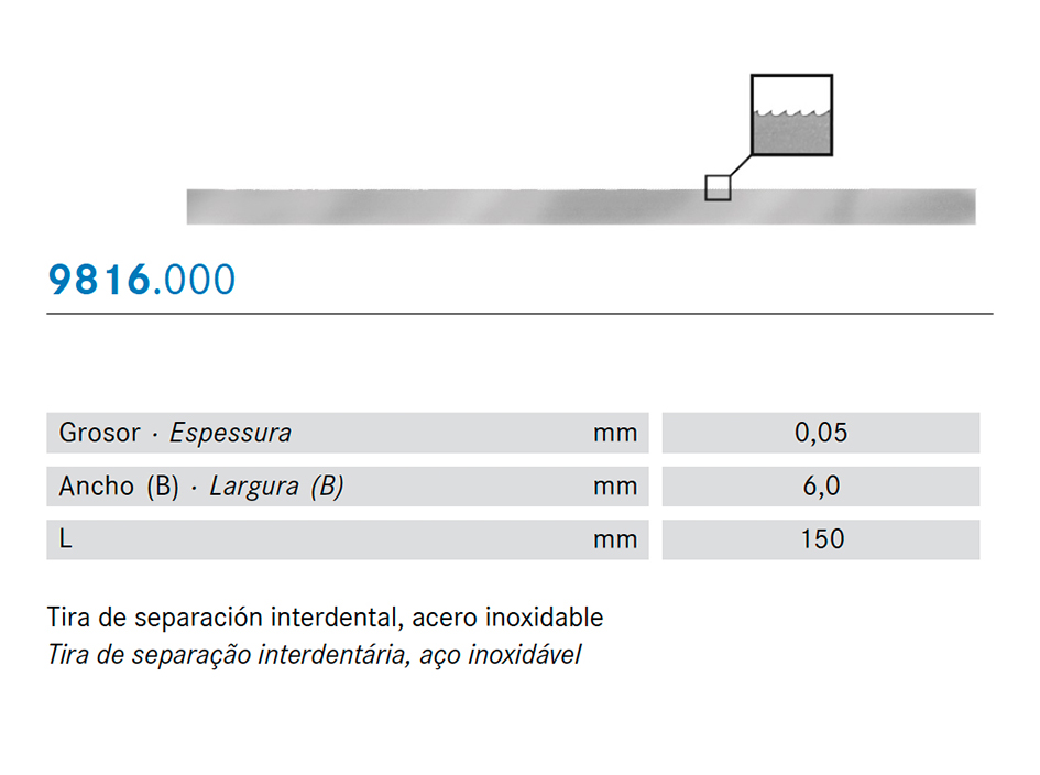 Tiras para separar la zona interdental. Acero inoxidable. 150 mm. x 60 mm.