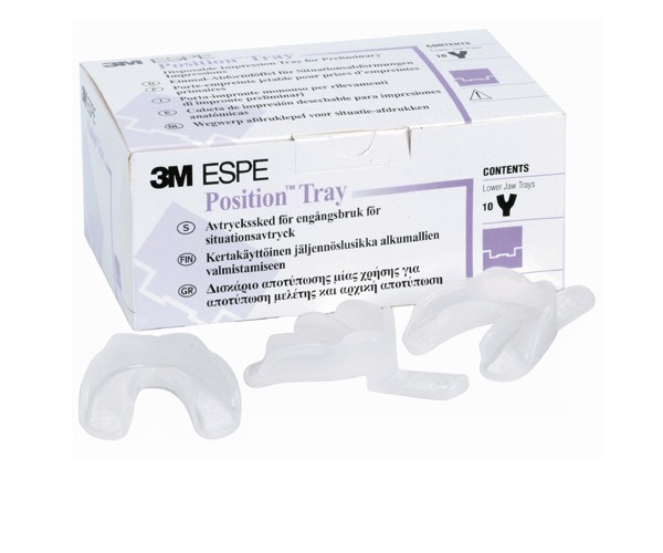 Size M Upper arch. Disposable tray that complements vinyl polysiloxane for Position™ Penta™/Quick impression taking to form a complete system for preliminary impressions. The Position tray is ideal for all alginate indications and is available in three sizes for both maxilla and mandible.