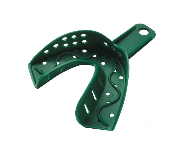 São as únicas cubetas descartáveis com design anatómico específico, o que permite maior espaço para o material de impressão em pontos críticos, como o contacto entre cúspides e cubeta, para uma impressão ainda mais fiel. Cor verde.