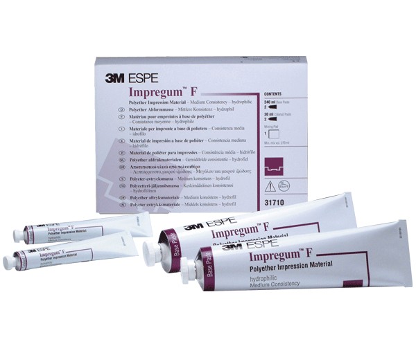 Polyether for impression taking for the monophase technique (manual mixing version). Indications: Impressions for crowns and bridges, impressions for inlays and onlays, functional impressions, drag impressions, implant impressions. CONTENT: 2 x 120 ml of base + 2 x 15 ml of activator + mixing pad.