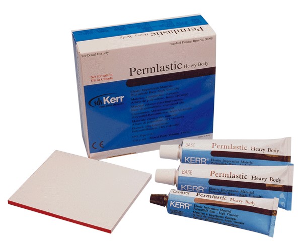 Permlastic is available in three viscosities. Light Body (fluid) is excellent for inlays and bridges. Regular Body is recommended for partial and complete impressions. The dense viscosity of Heavy Body is optimal for fluid compression in the double impression technique or copper band.