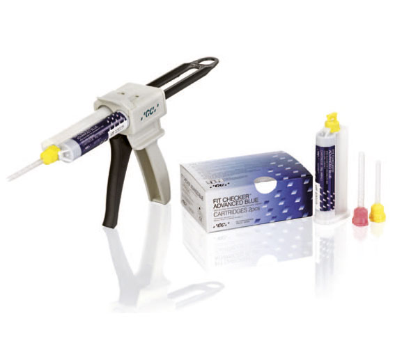 The new Fit Checker Advanced and Blue Fit Checker are Polyether Vinyl materials for checking contact points and the accuracy of the fit of prosthetic work. Thanks to a very fine consistency and a short setting time, along with hydrophilicity, both materials have extremely practical applications and provide precise identification of all types of poorly fitting prostheses.