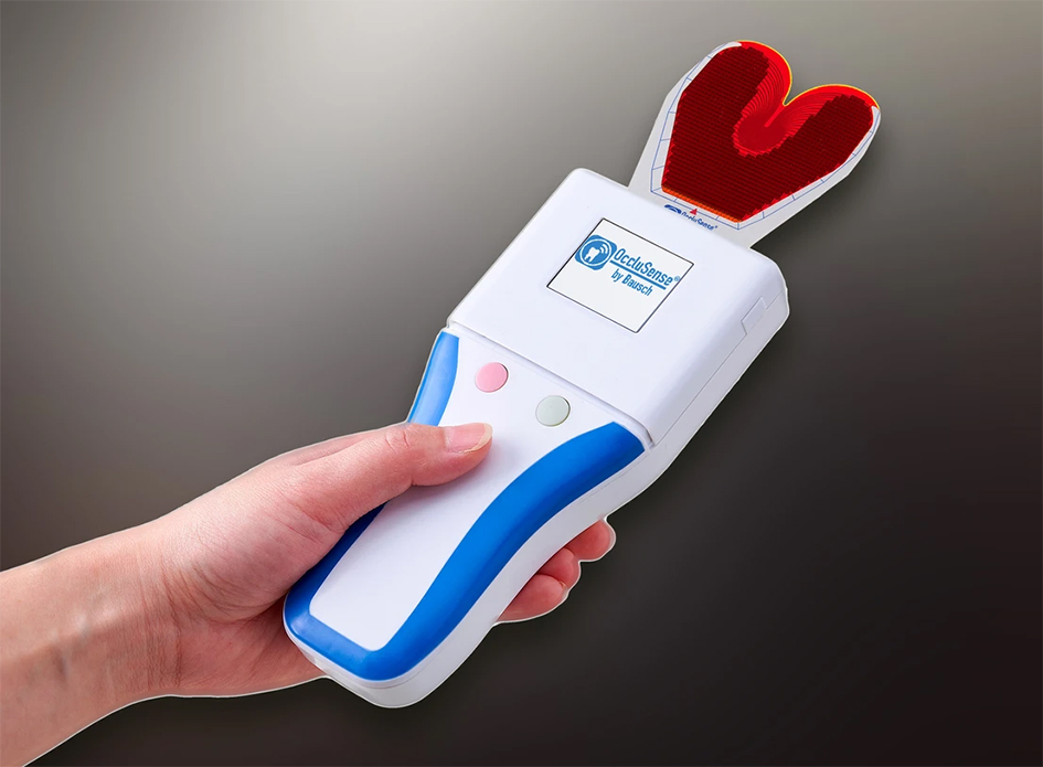 O sistema OccluSense® com o seu sensor de pressão descartável de 60 µm de espessura, de cor vermelha, regista tanto a oclusão estática como a dinâmica e é utilizado como o material de teste de oclusão tradicional. As vantagens do sistema OccluSense® são evidentes, uma vez que se podem evitar cargas incorretas de superestruturas suportadas por implantes. Os contactos prematuros durante as correções oclusais, bem como as cargas incorretas em laterotrusão e mediotrusão, podem ser detetados diretamente. A distribuição da pressão mastigatória do paciente é registada digitalmente em 256 níveis de pressão e transmitida para a App OccluSense® do iPad via WIFI para uma avaliação adicional. A transferência habitual de cor nas superfícies oclusais do paciente facilita a atribuição dos dados registados. Estes dados, que podem ser apresentados como gráficos bidimensionais ou tridimensionais, incluindo a distribuição da força mastigatória com até 150 fotogramas por segundo, podem ser armazenados no sistema de gestão de pacientes da aplicação do iPad, recuperados ou exportados a qualquer momento. Assim, as alterações oclusais podem ser documentadas antes e durante os ajustes oclusais. Conteúdo: Estojo azul + Dispositivo de mão OccluSense + 25 sensores L (BK 5025)