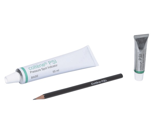 Polysiloxane base material for locating pressure points in dentures, crowns, and bridges. Creamy consistency. CONTENTS: 55 ml of base paste + 10 ml of catalyst + accessories.