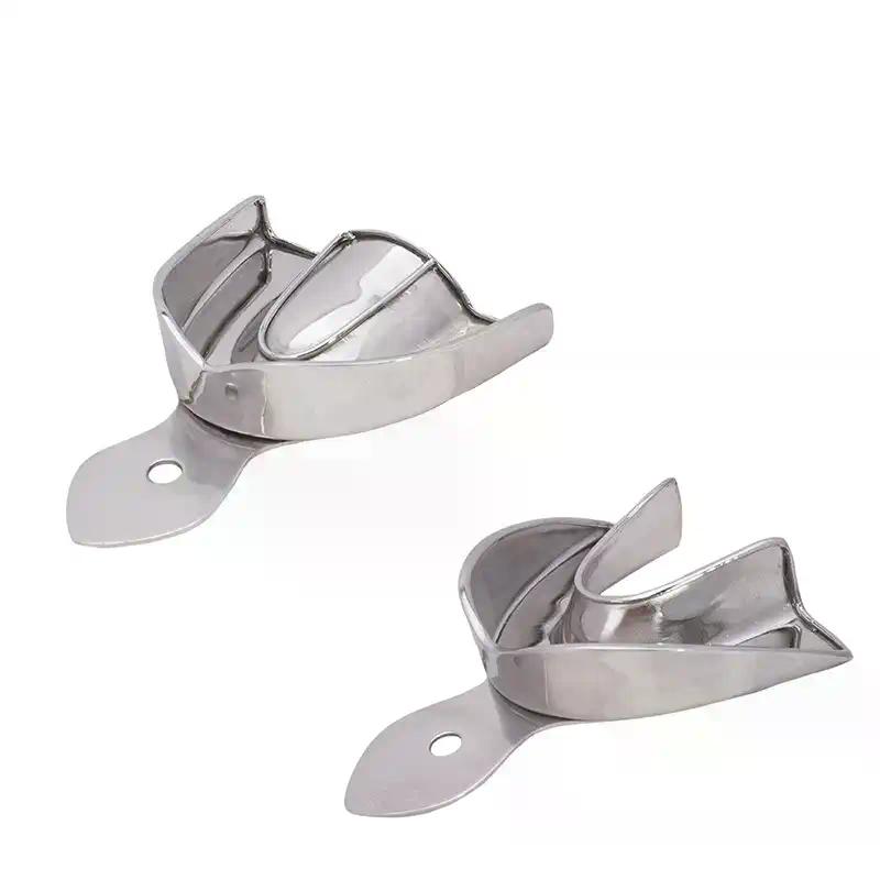 An Impression Mold is a container specially manufactured for the production of dental impressions, therefore it consists of a body, to contain the different existing impression materials, which has an adequate shape adapted to oral anatomy, varying according to the upper arch or lower. These molds also consist of a sleeve that will allow the dentist or dental hygienist to secure said mold and lift it to the patient's mouth.