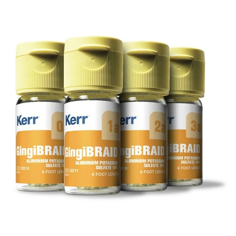 GingiBRAID+ Braided cotton cord resistant to retraction instruments. It does not fall out of an open groove nor fray. Packaging of 183 cm. Impregnated with potassium aluminum sulfate, cotton fiber that will not split or contract in the groove.