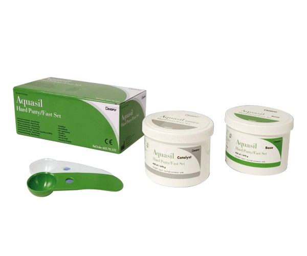 The essential component is a Hydrophilic Quadrafunctional Siloxane (QHS) created by Dentsply, which combines a network of polymers with multiple cross-links and bonds along with a new SURFACTANT. This polymer network provides exceptional cohesive strength, now also incorporating a range with a shorter setting time (Fast Set). Precision: excellent reproduction of the finest details - Maximum wettability: even lower contact angle - Dimensional stability - High resistance to deformation - Excellent flow around the preparation without slumping: once set in the tray, it does not flow into the patient's throat - Maximum tear resistance - Biological tolerance - Pleasant menthol flavor - Easy removal from the mouth - Optimal behavior in disinfection: no deformation. Content: 450 ml base + 450 ml catalyst and 2 mixing spoons.