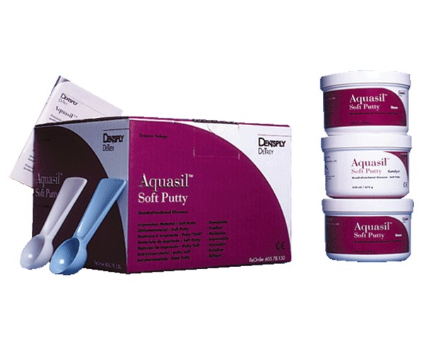 Aquasil ULTRA is a complete range of impression materials with a unique chemistry. The essential component is a Hydrophilic Quadrafunctional Siloxane (QHS) created by Dentsply, which combines a network of polymers with multiple cross-links and bonds, along with a new SURFACTANT that now provides GREATER WETTABILITY and an even LOWER CONTACT ANGLE, which was already excellent. This polymer network offers exceptional COHESION STRENGTH and GREATER TEAR RESISTANCE, now also incorporating a range with a shorter setting time (Fast Set). Precision: excellent reproduction of the finest details - Maximum wettability: even further reduced contact angle - Dimensional stability - High resistance to deformation - Excellent flow around the preparation without slumping: once set in the tray, it does not flow into the patient's throat - Maximum tear resistance - Biological tolerance - Pleasant menthol flavor - Easy removal from the mouth - Optimal behavior in disinfection: no deformation - Different setting times: regular and fast set. CONTENT: 4 x 450 ml. Base 4 x 450 ml. Catalyst + 2 mixing spoons.