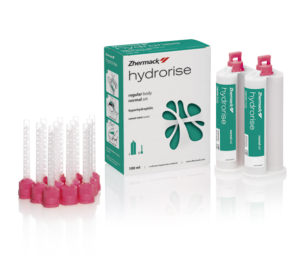 A hyper-hydrophilic silicone of medium viscosity for fixed and removable prosthetics and implantology. Indicated for the double impression technique or single-phase (simultaneous) with two viscosities. Maximum accuracy in detail reproduction - High tear resistance. Excellent elastic recovery. High dimensional stability. Overcomes retention without tearing. Thixotropic, does not drip. Mixing ratio 1:1. Extremely water-compatible (hyper-hydrophilic). Sweet mint aroma. Green color.