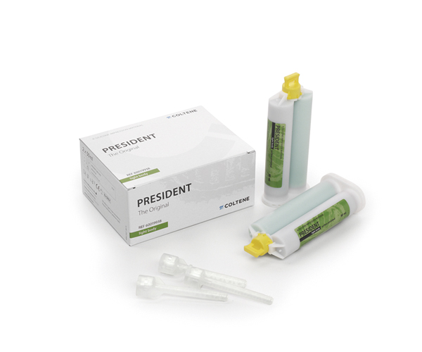 President The Original, next-generation VPS addition silicone, maximum precision, detail, and dimensional stability. The new President The Original materials offer additional viscosity. The Xtra light body is a very fluid material that can be used to capture custom marginal details, flowing into the narrowest areas without dripping from the tooth. Perfect impressions for all situations, even in humid conditions.
