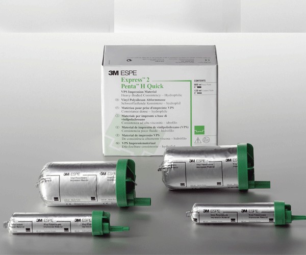 Express™ 2, the new generation of VPS from 3M ESPE, provides the ideal starting conditions for achieving maximum precision impressions and a great fit in indirect restorations. Available in a range of viscosities – from "putty" to ultra-flowable – the impression-taking VPS from the Express 2 line offer key advantages for one-step or two-step impression techniques. All heavy-body Express 2 silicones are automatically mixed in the Pentamix unit. CONTENT: 2 x base paste of 300 ml, 2 x catalyst of 60 ml, 1 instructions.