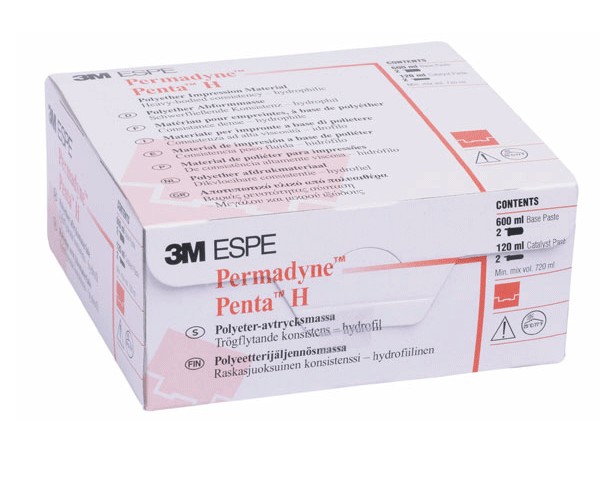 Poliéteres para a toma de impressões de alta precisão para a técnica em um passo (pesada/fluida) e mistura e dispensação automática no sistema Pentamix™ e na pistola Garant™ da 3M ESPE. Permadyne Penta H (pesado) e Permadyne Penta L (fluido) para mistura e dispensação automática na unidade de auto mistura Pentamix.