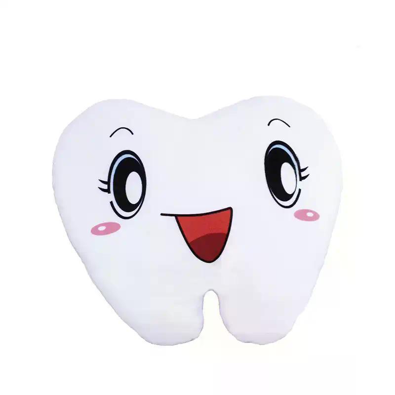 Cojín con forma de diente. Muy suave al tacto, tipo peluche. Es ideal para decorar la sala de espera de tu clínica dental.