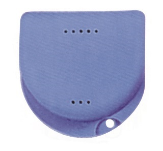 Contenedor de ortodontia com orifícios de ventilação. Pode-se adicionar um cordão, uma vez que possui um orifício para o efeito.