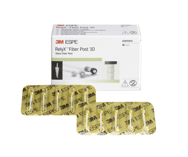 Relyx Fiber Post 3D fiberglass posts, featuring the trusted exclusive 3D design. Provides greater mechanical retention to the core material thanks to the 3D coronal macro-retentions. Good retention and adhesion to the root canal due to its microporous surface without the need for silane. Improved control of post positioning due to its excellent radiopacity. Low risk of root fracture due to dentin-like elasticity. Excellent aesthetics compared to metal posts.