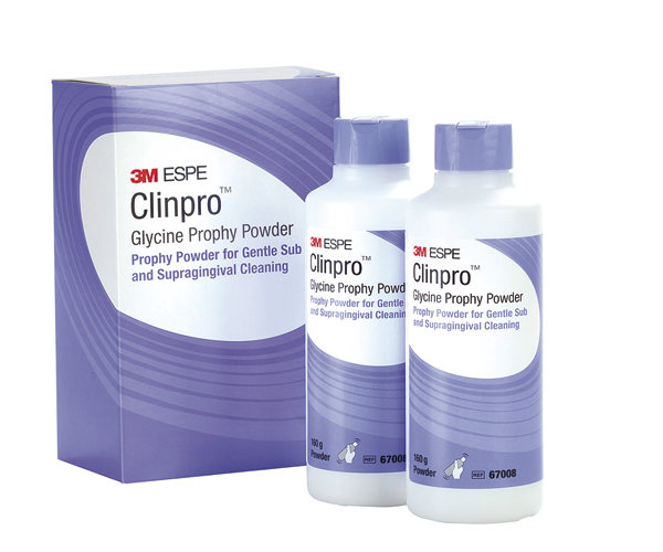 Polvo para el tratamiento de pulido mediante chorreado que elimina la placa subgingival y tinciones sin producir pérdida clínicamente relevante de tejido dental. Menos agresivo que los polvos convencionales para superficies dentarias de esmalte y dentina y con un sabor agradable.