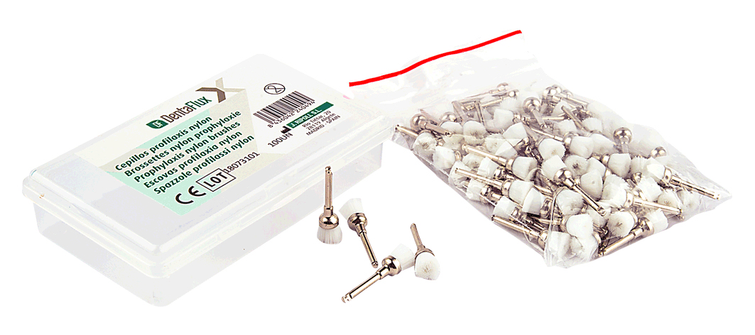 For prophylaxis. Polishes and cleans dental surfaces. The bristles of the brushes have the appropriate hardness for optimal cleaning without damaging the surface of the teeth.