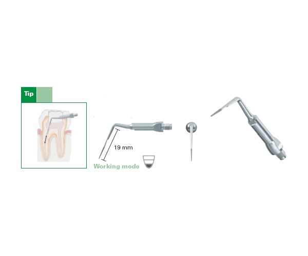 Principalmente utilizada na zona coronal do canal radicular para trepanar à volta dos pinos. Também serve para localizar canais calcificados até metade do caminho para a raiz. O fornecimento de água está localizado na extremidade mais distante da ponta para melhorar a limpeza e o arrefecimento.