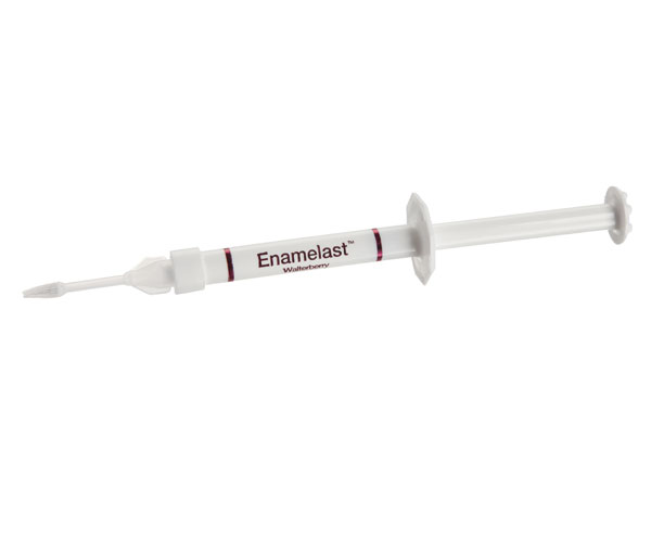 Enamelast® Fluoride Varnish es un barniz de fluor endulzado con Xylitol con un 5% de Sodio que produce una oclusion mecánica de los tubulos dentinarios en tratamientos de dientes con hipersensibilidad.