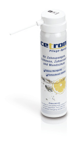 Care and cleaning of splints, prostheses, orthodontic appliances, sports mouthguards, and devices for the treatment of obstructive sleep apnea. Reduces the typical taste of the monomer and provides a pleasant lemon flavor. This spray also helps maintain the shine of the appliances. Very convenient to carry.