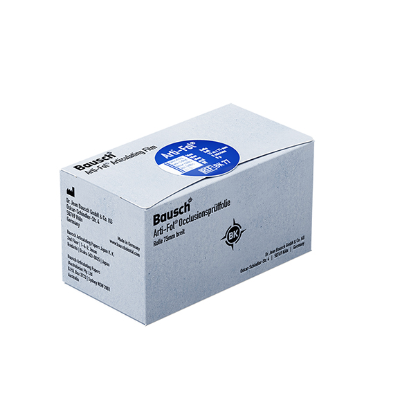 Even small premature contacts at micrometer margins can cause functional disturbances in patients (often temporomandibular joint disorders) and can even impede the act of swallowing saliva. Therefore, visualizing the relationship of occlusal contacts demands high standards from the control medium. Often, occlusal contacts have a very small diameter that is difficult to recognize on highly polished ceramic or metal surfaces. The control medium should be extremely thin to ensure a clear and accurate visualization of the actual occlusal contacts. Bausch occlusion foils meet these requirements and are particularly distinguished by their strong marking even on difficult-to-control surfaces. The thin color coating of only 6 microns, consisting of wax and pigment, also contains hydrophilic components to significantly improve color transmission even on wet occlusal surfaces. Arti-Fol® Bausch foils are especially suitable for visualizing static and dynamic occlusion in various colors. In the first step, static occlusion is checked in red, and in the second step, dynamic occlusion is checked in black. The order of the colors can also be changed. For a more precise representation of dynamic occlusion, multiple colors can also be used. Bausch Arti-Fol® is supplied in four different colors. For the visualization of antagonist contacts, all foils are also supplied with a bilateral color coating.