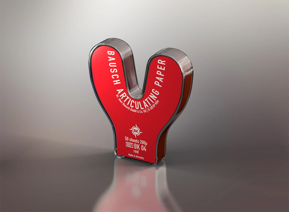 The Bausch 200-micron articular paper with progressive coloration is the only paper that allows differentiation of the masticatory force according to the intensity of the color.