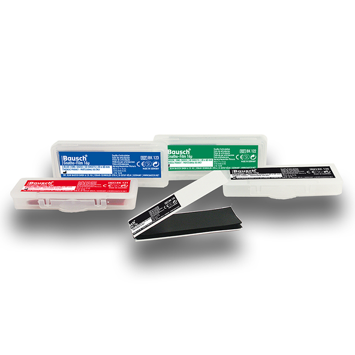 The Gnatho-Film is an occlusal film with soft and flexible properties designed to meet the needs of certain dental professionals. The features of the Gnatho-Film are: Ultrafine: 16µ polyethylene - Soft colored layer, 6µ thick, consisting of a blend of waxes with hydrophilic components - It has high tear resistance. This exclusive film perfectly adapts to the individual conditions of each occlusal surface. The flexibility of the polyethylene, along with the soft colored layer, allows for accurate verification of true contact points.