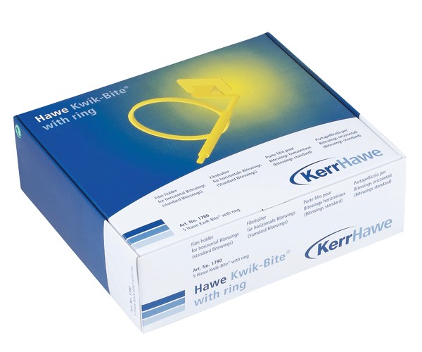 The radiographs are guaranteed to be free of overlaps, thereby eliminating the need for unnecessary repeat X-ray exposures. CONTENT: 5 Kwik Bite with Ring + 1 auxiliary radiographic holder device.