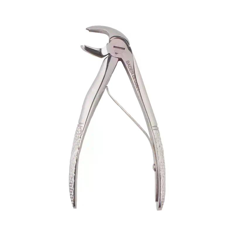 The forceps for the extraction of upper molars in children, are characterized by the reduced dimensions of both the sleeve and its active part, they have the same angle as the forceps for adults.
