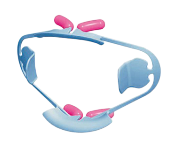 Lip and cheek retractor. Thanks to its anatomical shape and opening for the frenum, it provides comfort to the patient even during prolonged treatments. The structures and pads can be sterilized in an autoclave at 134 °C for a minimum of 3 minutes.