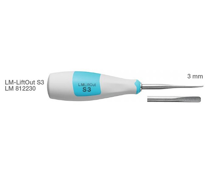 The LM SlimLift instruments are specifically designed to access difficult-to-reach areas that are not accessible with traditional luxation instruments. They allow for the extraction of dental pieces in the least traumatic way possible. This is important for rapid healing. The ultra-fine tip of the instrument is introduced into the periodontal space and slowly advances towards the apex while gently rotating the instrument back and forth. Do not use as a lever.