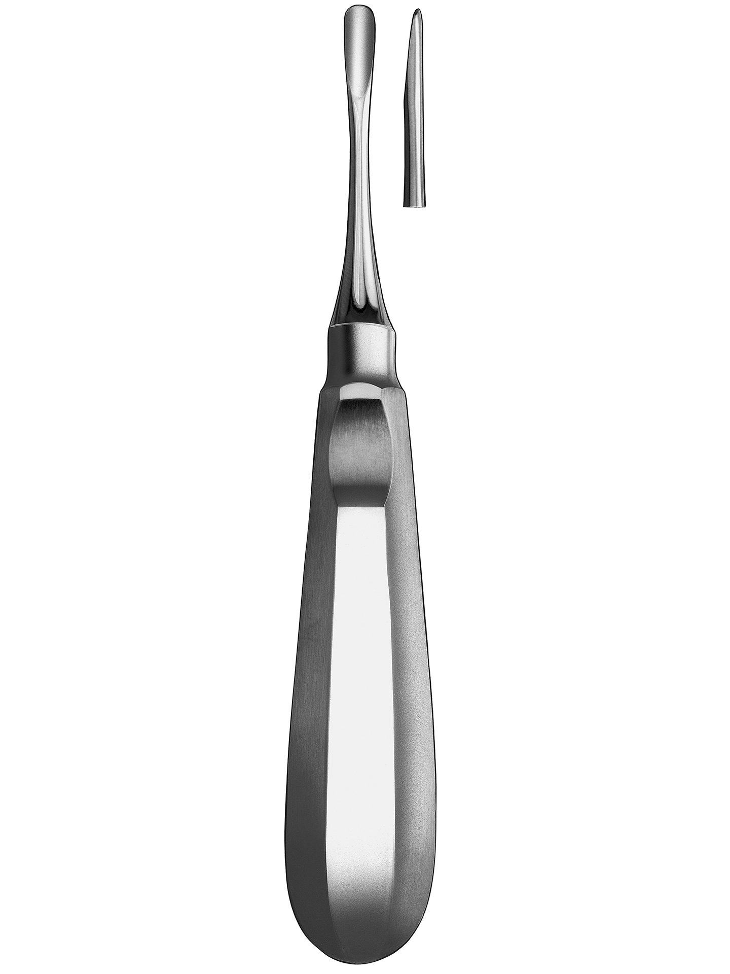 Instruments for separating the gum from the tooth prior to extraction. The edges are sharp, and the shape is flatter than a traditional elevator. This design provides perfect control.